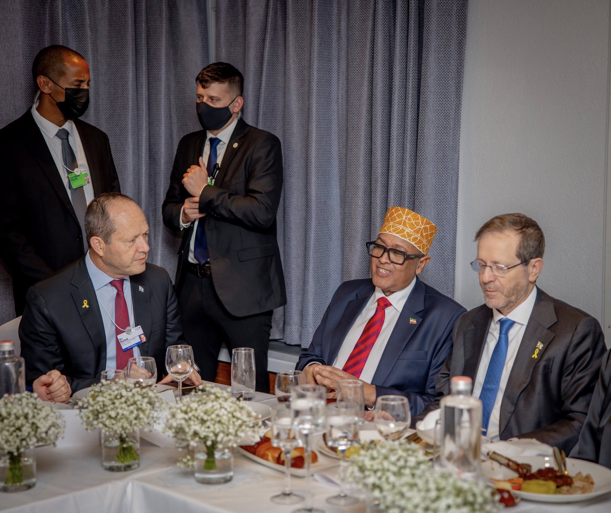 DAVOS, Switzerland (Horndiplomat) — Israeli President Isaac Herzog welcomed the establishment of diplomatic relations with Somaliland after holding a dinner meeting late on wednesday with Somaliland President Abdirahman Mohamed Abdillahi Irro in Davos, signalling a new phase of cooperation and engagement between the two sides.