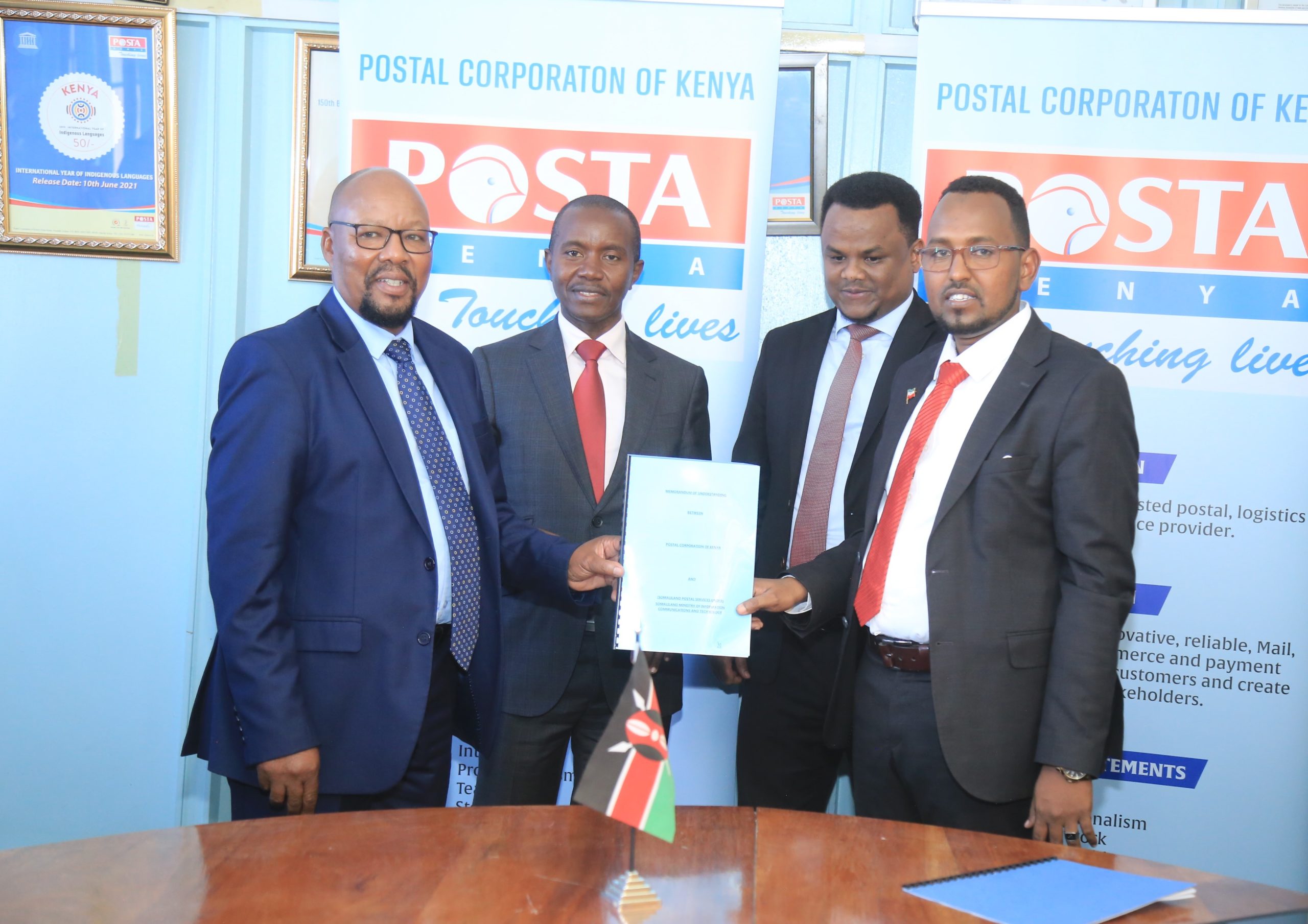 The Postal Corporation of Kenya (PCK) has signed a Memorandum of Understanding (MoU) with the Somaliland Postal Services to explore cooperation in the areas of mutual interest in international mail processing and delivery, knowledge exchange and innovative solutions in Kenya, Somaliland and other African countries.
