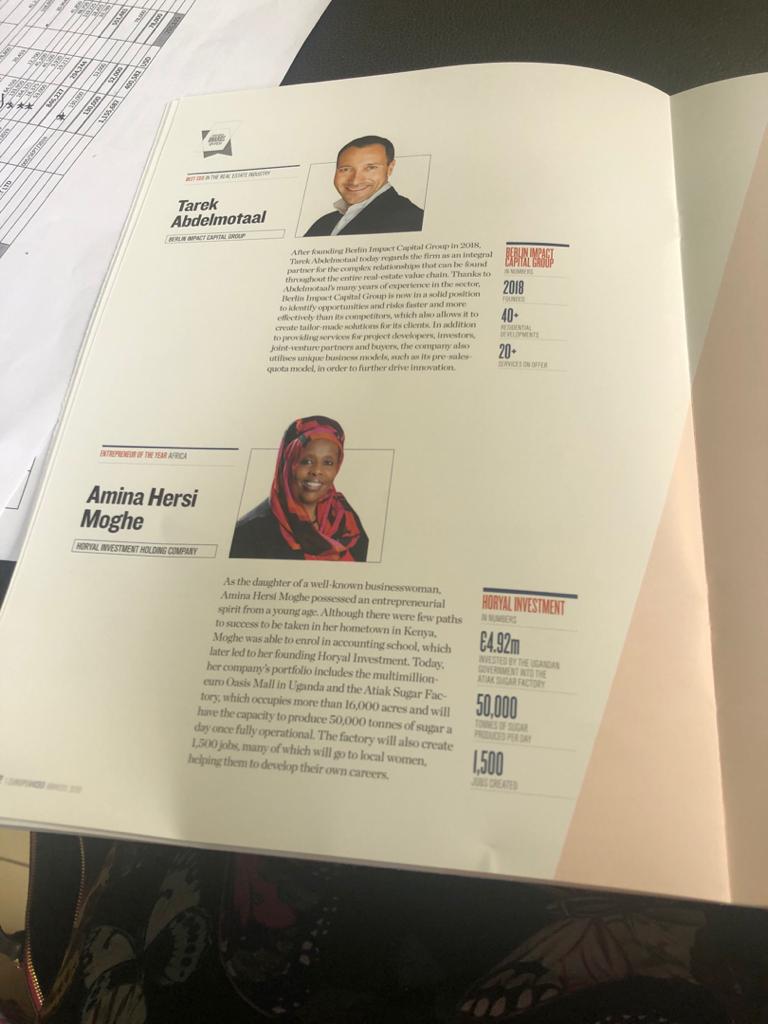 Among the Entrepreneurs honoured in this year’s award is Amina Hersi Moghe, Named As The Entrepreneur of the year of Africa.