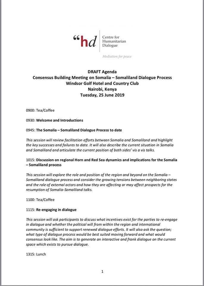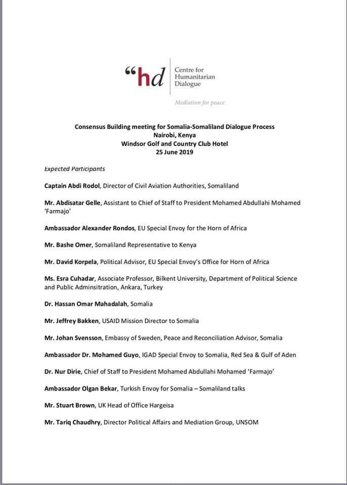 “Somali govt representatives will not participate in the expected Consensus Building Meeting in Nairobi. However, we would like to confirm that the govt is committed to engage in constructive dialogue with Somaliland when a suitable venue, agenda and participants are agreed.”Said Nur Dirie Villa Somalia chief of Staff.