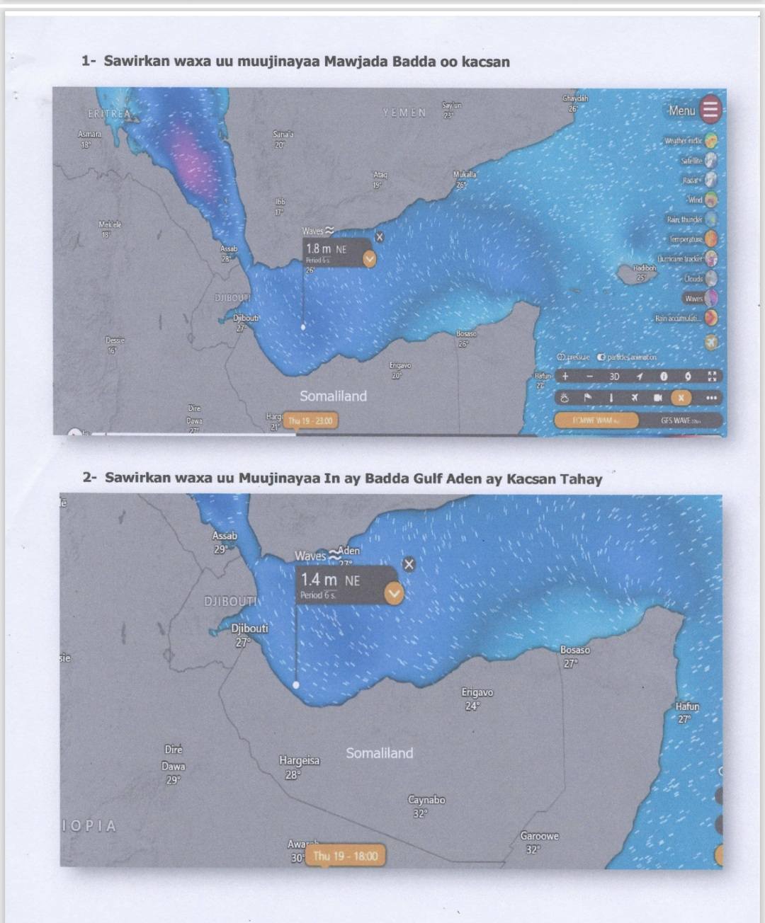 In a statement released by the Coast Guard Command Headquarters, the maritime authority said weather forecasts indicate that sea waves along Somaliland’s coast could reach heights of up to 1.8 meters between March 14 and March 20, 2026, potentially creating hazardous conditions for small vessels and coastal activities.