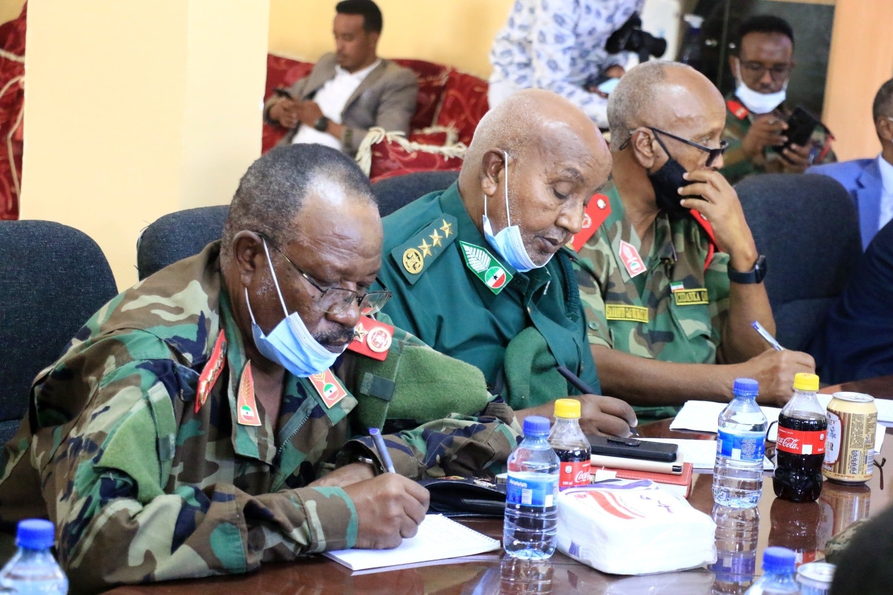 Ethiopian delegation, General Husein Hashi Qasim head of the Special Liyu Police, Major General Zewdu Belay, Commander of Eastern Division of the Ethiopian National Defense Forces (ENDF), and Ethiopia’s Somali state minister of irrigation Abdirahman Iid Dahir.