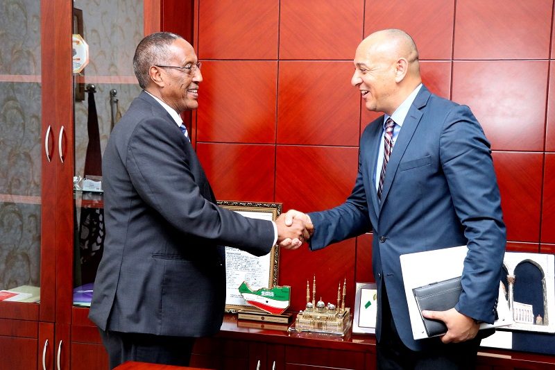Somaliland President Muse Bihi Abdi Handshakes with United States Ambassador to Somalia Amb. Martin Dale