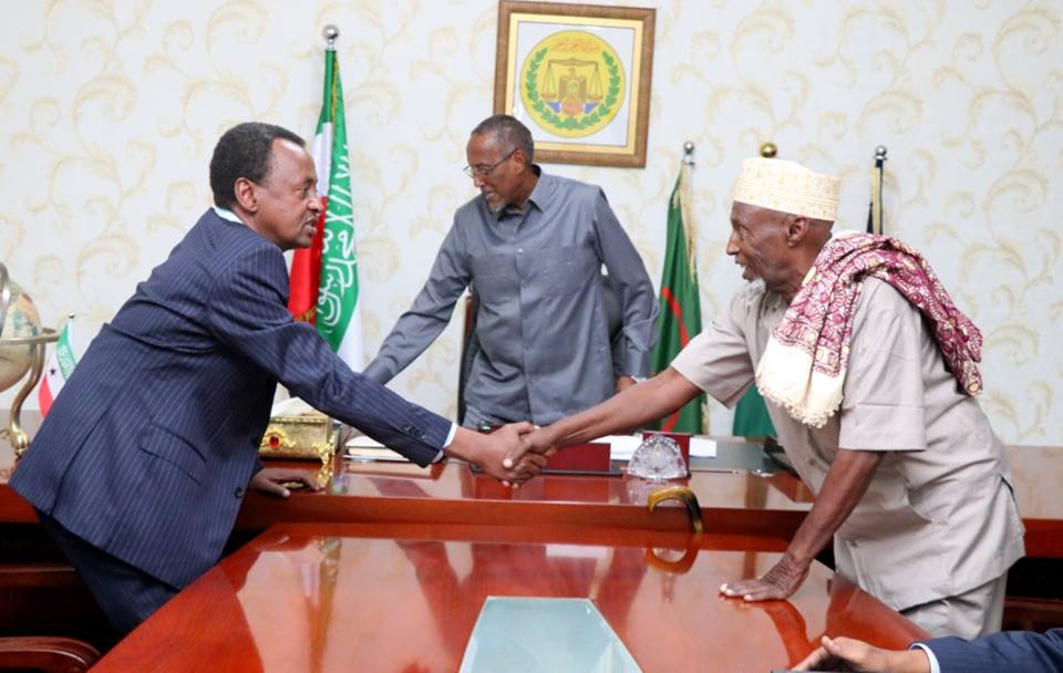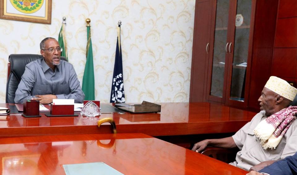 His Excellency the President of the Republic of Somaliland, Musa Bihi Abdi, Saturday, received Jama Mohamoud ‘Jama Yare’ (now popularly changed to ‘Jama Ceeryaan’), the father who positively changed the course of the El Afwein Clans Conflict mediation outcome on end of July.