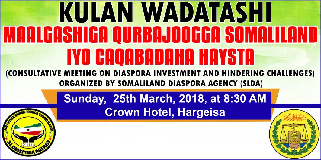 The first Somaliland Diaspora Investment Consultative meeting was held in Hargeisa on the 25th of March 2018 at the Crown Hotel.