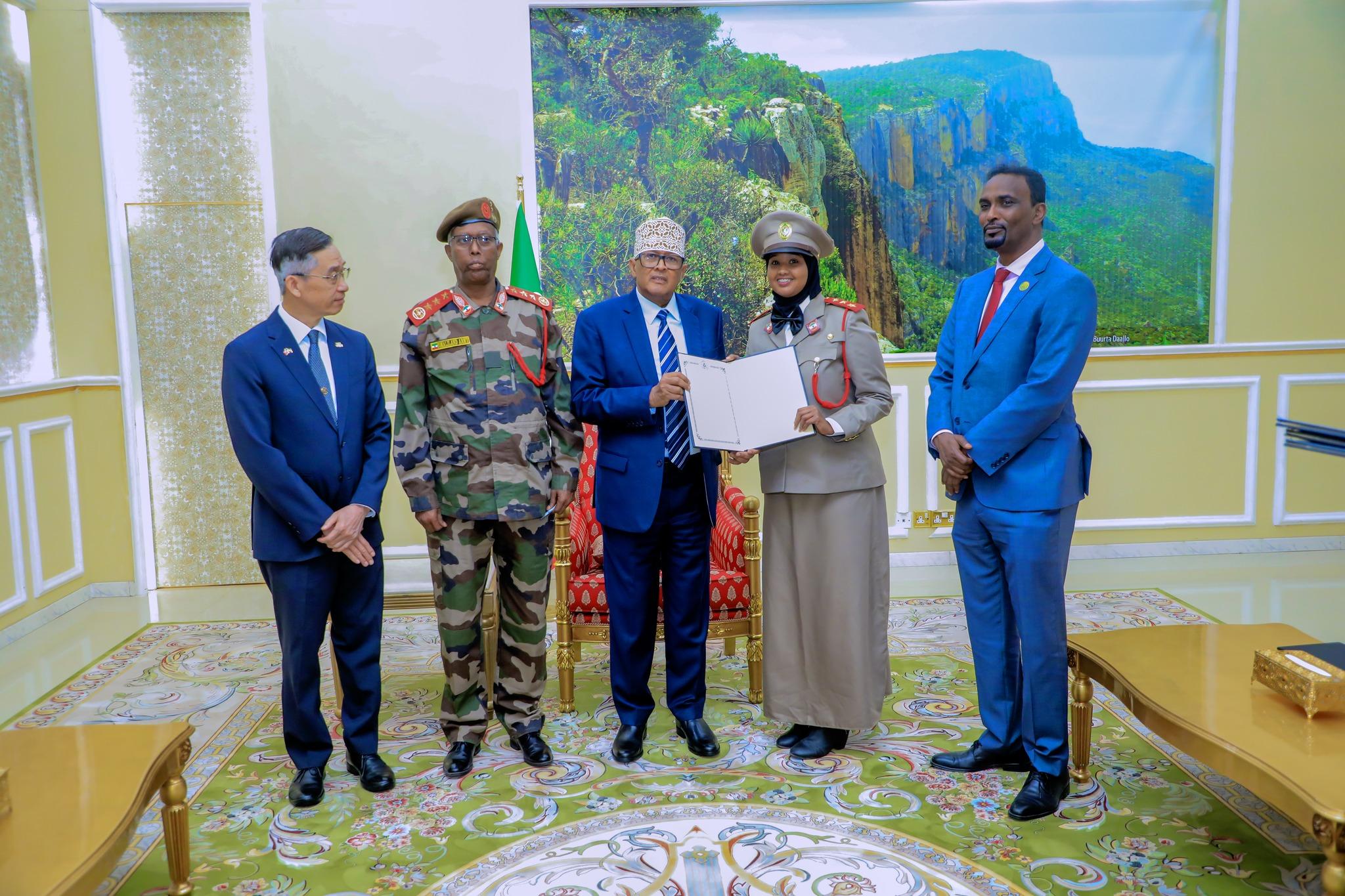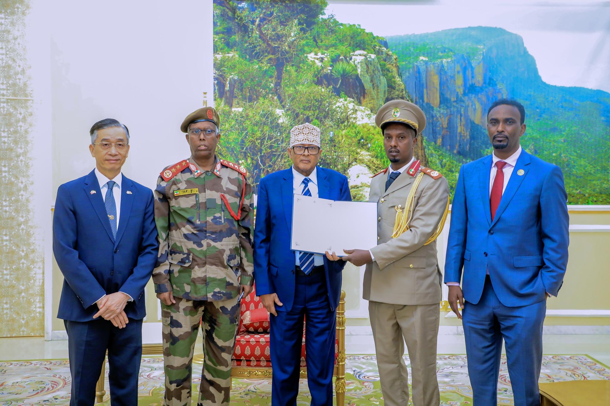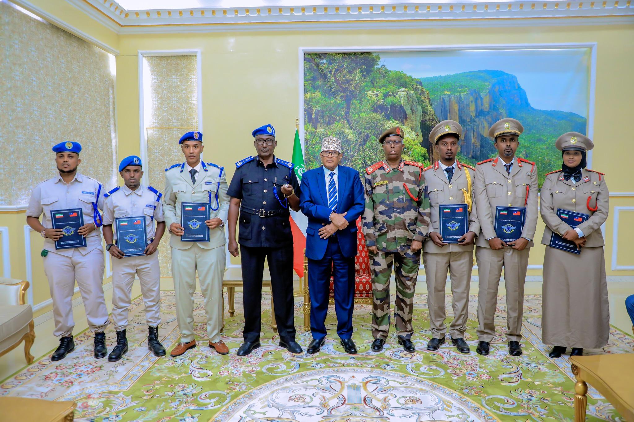 Hargeisa, Somaliland – In a landmark ceremony today, Somaliland President Abdirahman Mohamed Abdullahi (Irro) was joined by Ambassador Allen C. Lou of Taiwan to present the 2025 Taiwan Security Scholarships to seven outstanding officers from Somaliland’s military and police forces. These scholarships, designed to enhance Somaliland’s national security capabilities, are part of a broader initiative endorsed by the United States and other international partners.